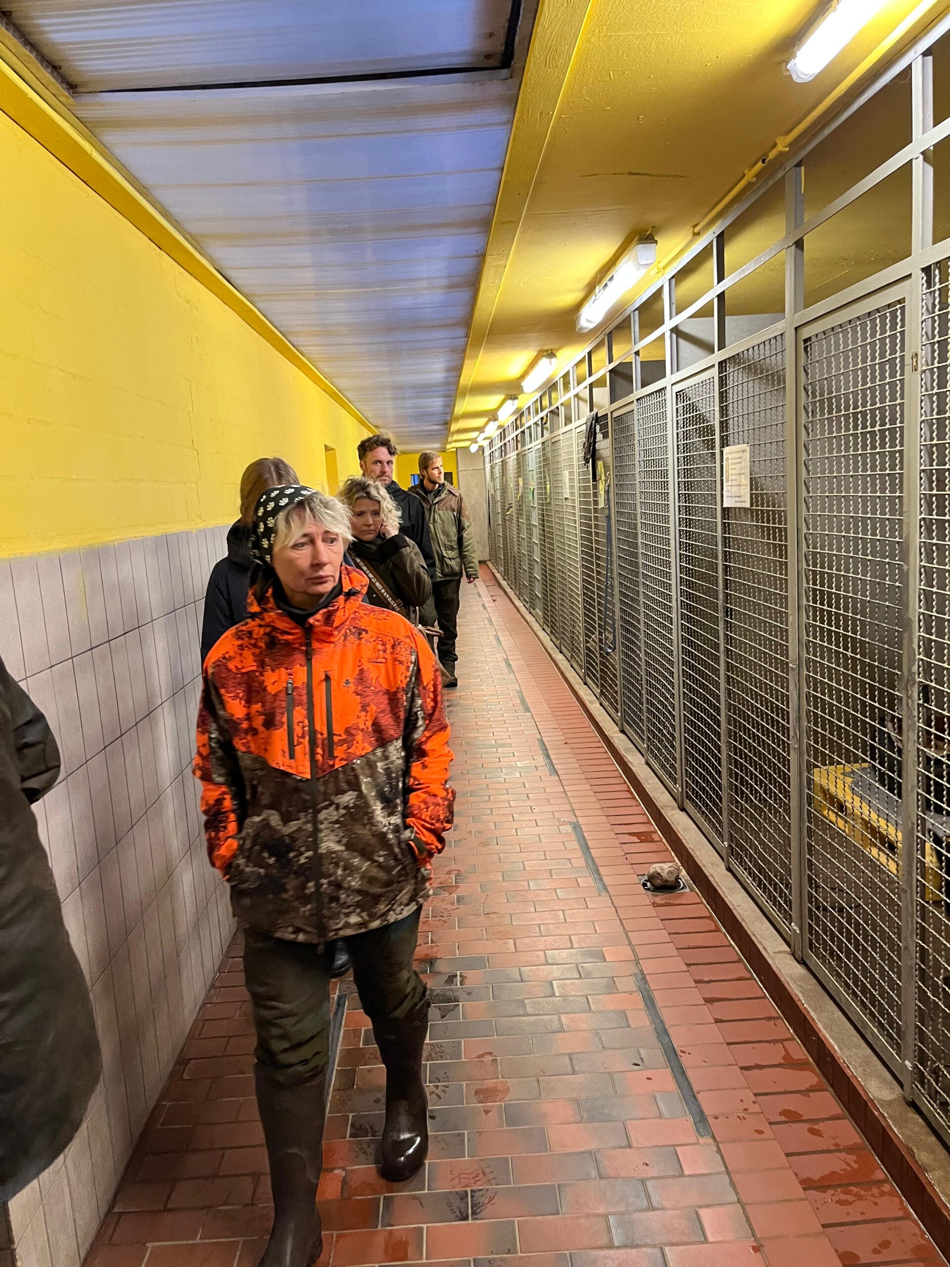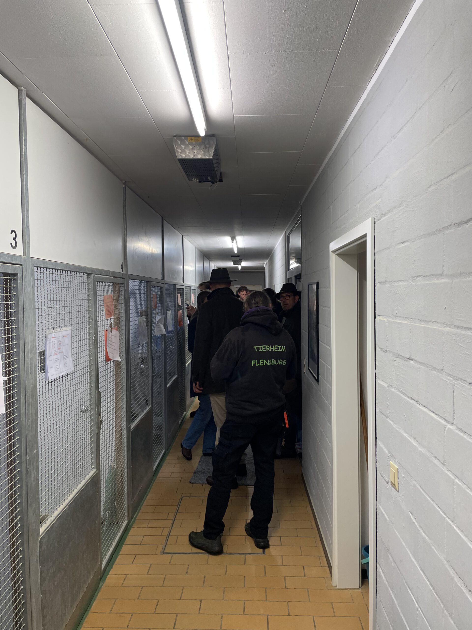 Die gehören zu einer Gruppe von Jägerinnen, Jägern und Familienangehörigen des Hegeringes VI aus Flensburg, der anläßlich einer Spende an das Tierheim dort von dem Tierheimleiter, Herrn Bargmann, zur Besichtigung eingeladen worden ist.