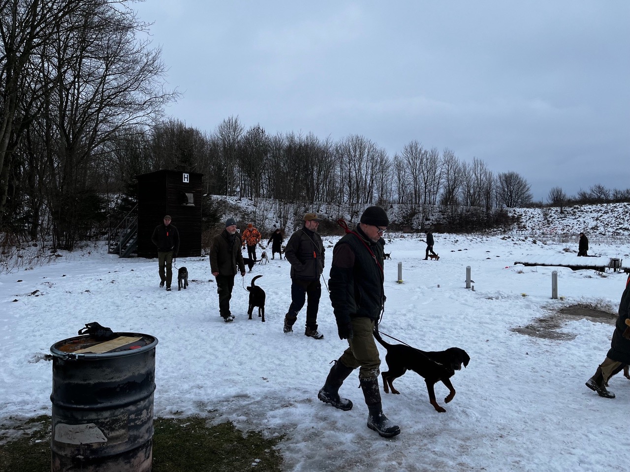 Kreishundeobmann Kai Ulrich begrüßte alle Teilnehmer und Ausbilder und berichtete von Neuigkeiten von der Messe Jagd & Hund. Im Anschluss verteilte er an die Hegeringobleute neu erworbenes Ausbildungsmaterial (div. Aportel, Dummies etc.). Damit es den Hunden nicht zu langweilig wurde, durften sie eine Vorstellungsrunde auf dem Schrot Stand laufen, während sich die Ausbilder Kai Ulrich, Lena Andresen, Heike Stapelfeld, Hans Wiele Petersen, Nico Magnussen, Heiner Björnsen und Jannek Schlüter zur Gruppeneinteilung zurückzogen.